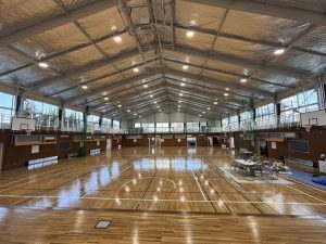 宗岡中学校にて体育館の大規模改修工事を行い、無事に工事が完了しお引渡しをいたしました。